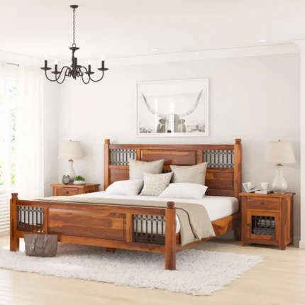 Priti : San Francisco Iron Grill Fitted Rustic Solid Wood Platform Bed Frame