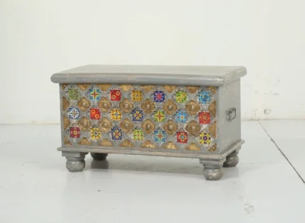 Grey Trunk | Ochre And Grey Embellished Trunk