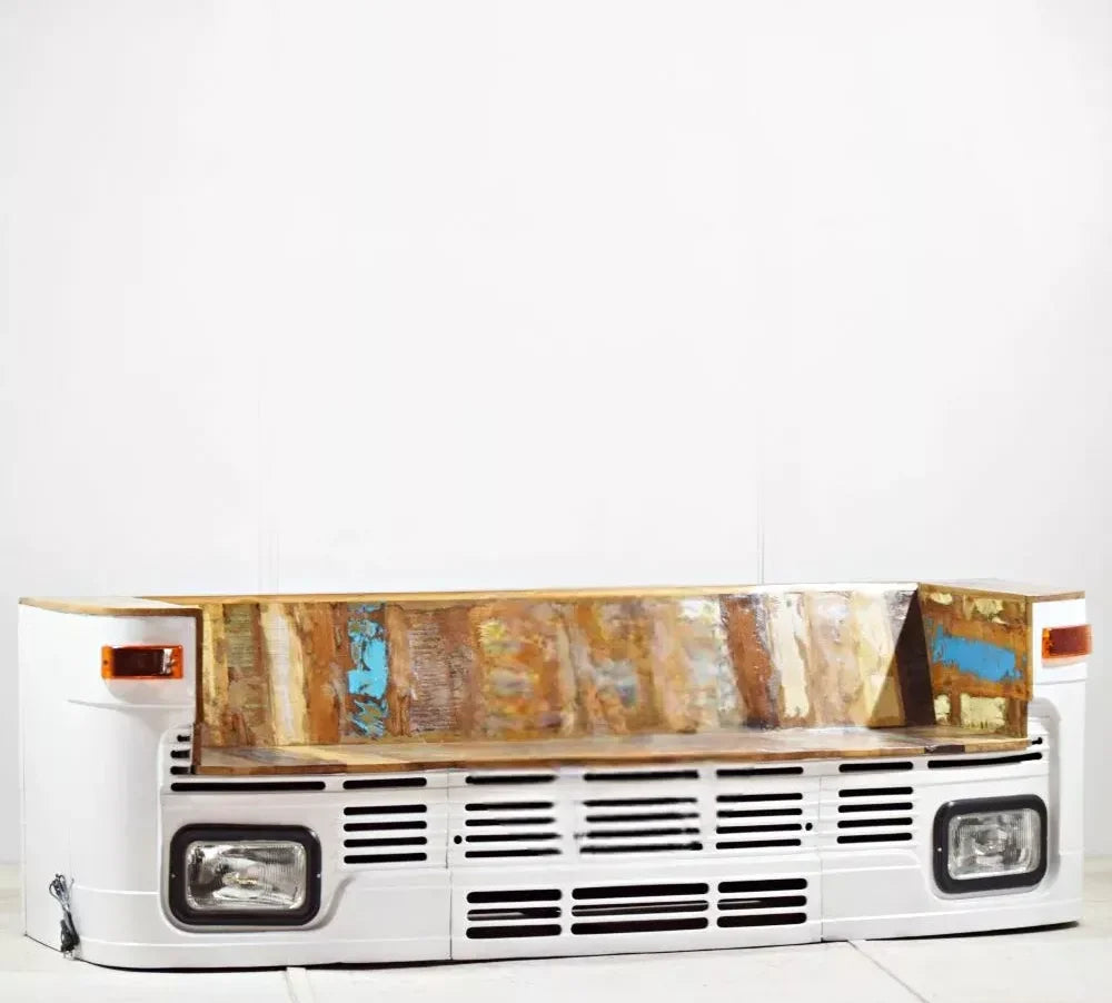 This Priti Old Truck Indian Style Handcrafted Automobile Long Bench Sofa truck-looking sofa, which at first glance will make you say something, has a real headlight and is strange in appearance that has never been seen before, which plays a role in creating a surprising atmosphere of strength that you can buy to look something different. can buy